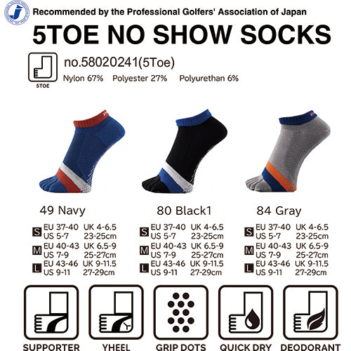 -Five-toe socks allow the toes to move freely, so you can grip and kick the ground. They also maintain the refreshing feel on your feet.